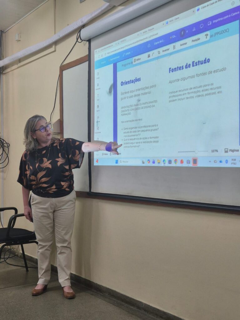 Na ocasião, a Profa. France Fraiha tratou sobre “Formação do Professor Pesquisador da Própria Prática: reflexão, pesquisa e pensamento prático”, trazendo para a discussão a formação de professores baseada na abordagem crítica a partir de casos de ensino. A atividade aconteceu no dia 07/11/2025 (terça-feira), presencialmente, no IFAM/CMC.