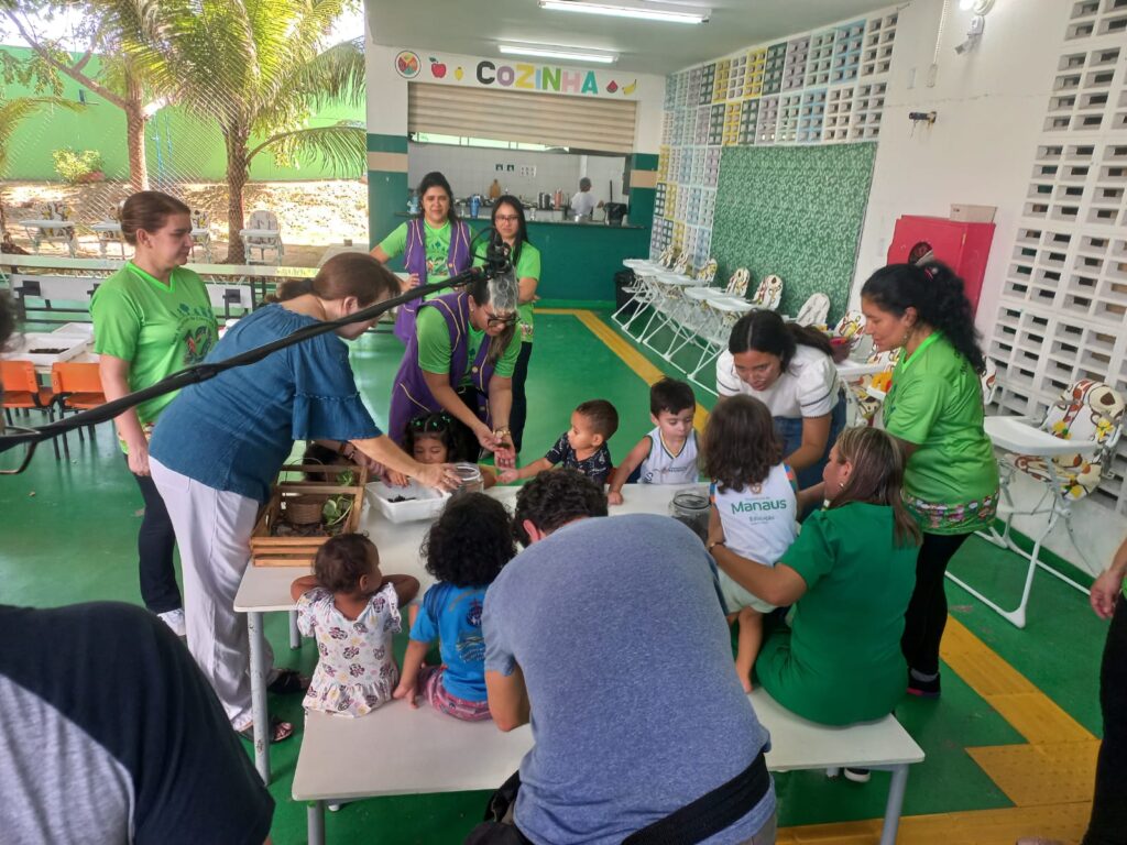 A Creche Municipal Magdalena Arce Daou, em Manaus, foi cenário de uma gravação especial no dia 01/09/2025. O objetivo era a produção de um documentário sobre o projeto “incluARTE TEArios e terrários: mundoARTE possível para além do diagnóstico”, que será exibido durante a cerimônia de premiação da 26ª edição do Prêmio Arte na Escola, no dia 12 de novembro deste ano.