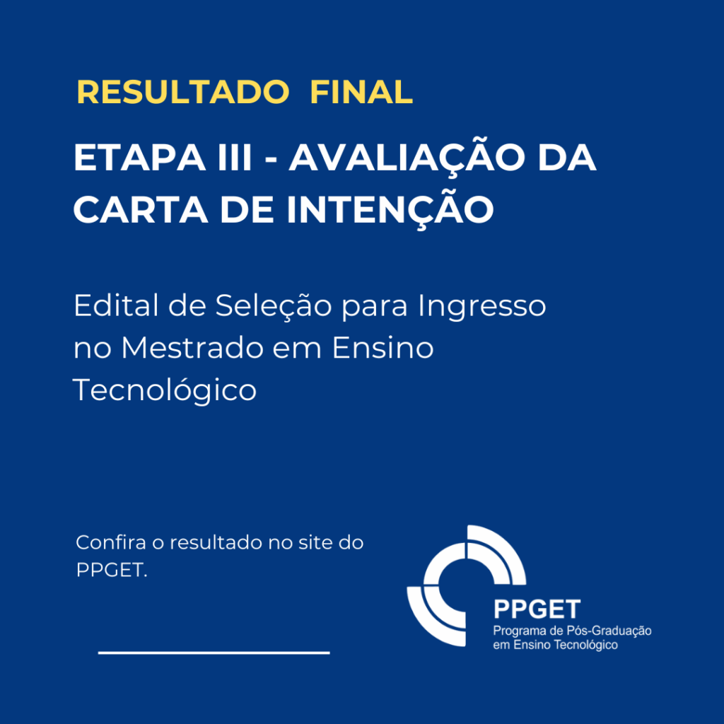 O resultado Final dos APROVADOS na ETAPA III do Mestrado – Avaliação da Carta de Intenção. Para acessar o resultado, clique aqui.